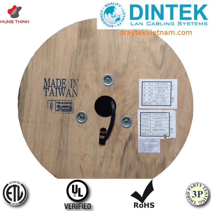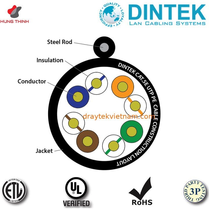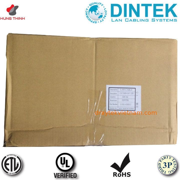 • Cáp Dintek đạt chuẩn quốc tế: CE, ROHS, ISO/IEC11801 2nd edition CLASS E; ANSI/TIA-568-C.2 Cabling Standard.